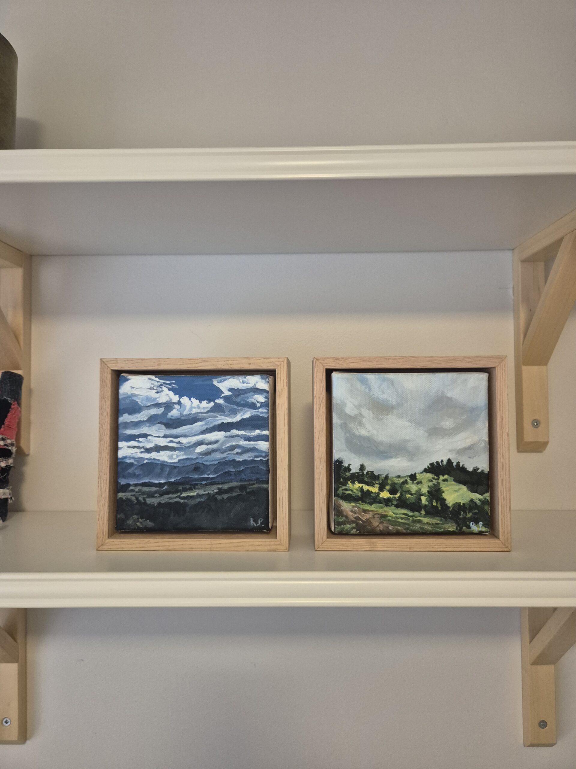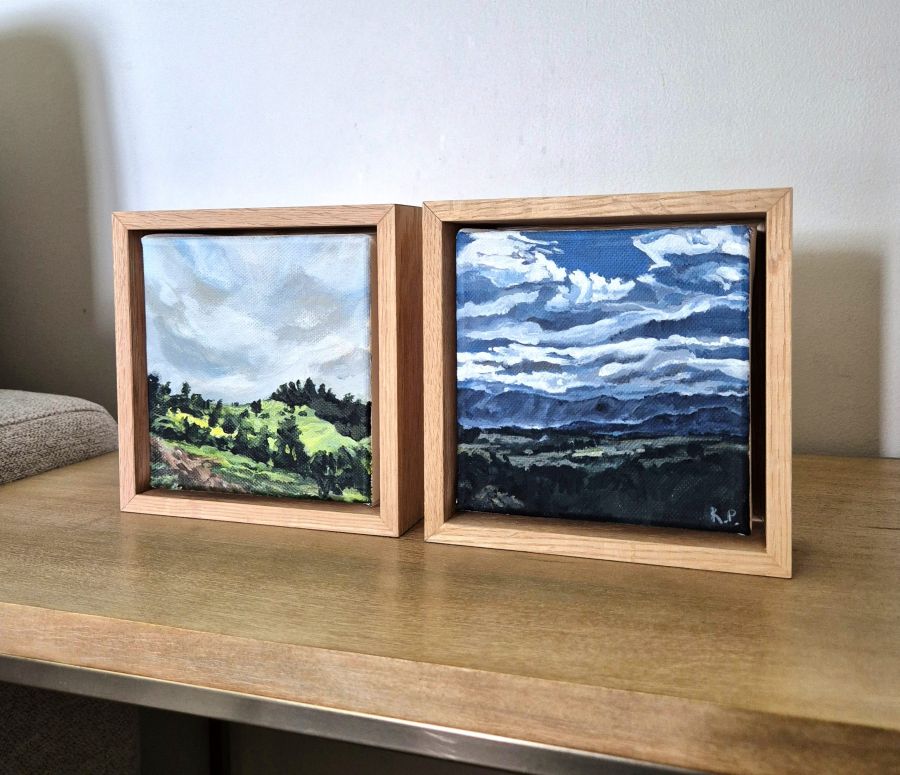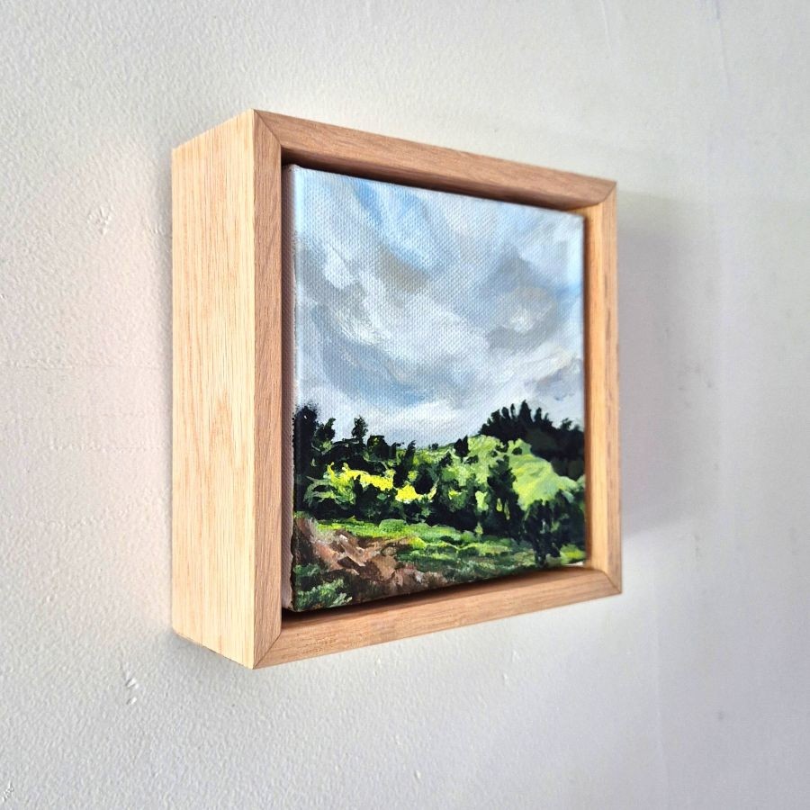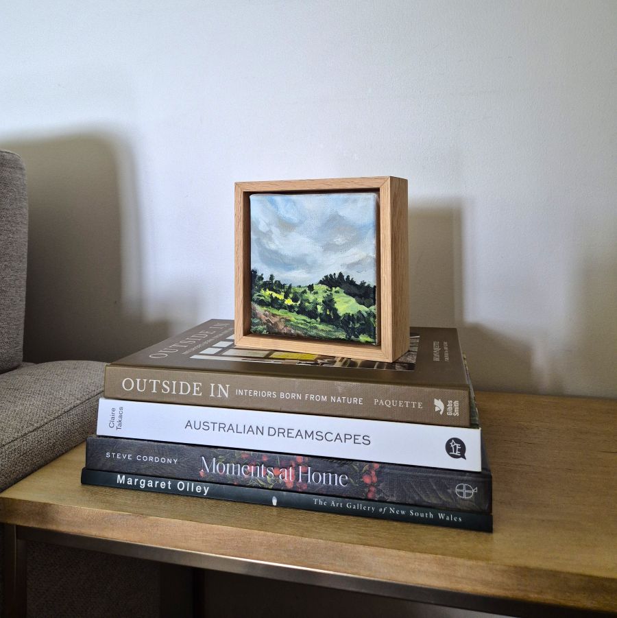 Peaceful Day is part of a new mini art series. This painting is part of the beautiful view from my sister’s home. The view is picturesque whichever way you look! It’s a delightful mini landscape artwork and I love it here on a pile of books with its face towards the light. Like it’s smiling.